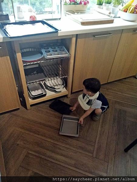 也許是看著我經常都在廚房穿梭,耳濡目染下他也超級喜歡廚房用品的,