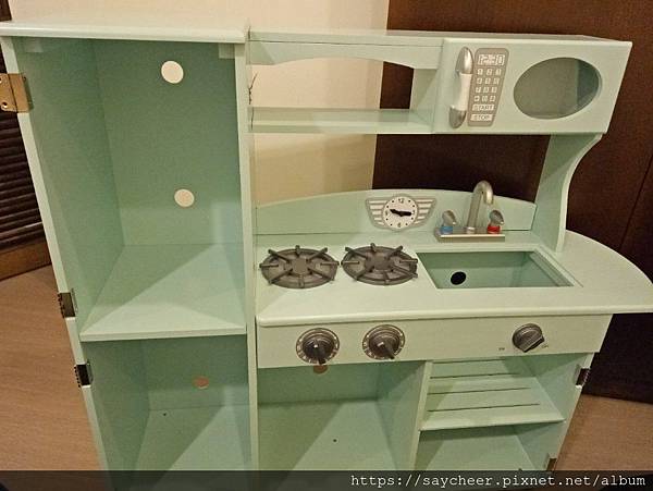 喜歡這組廚具是因為考慮到有時小姪女也會一起玩,兩個小孩一起時感覺這組的寬度(約莫97CM)比較夠。