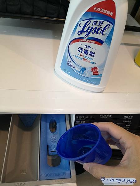 我家的洗衣機來說,要倒在柔軟精這一格喔。