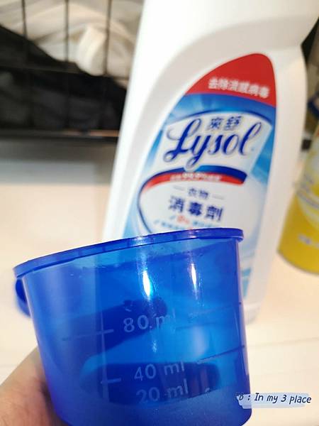 除菌使用:將1杯(60毫升)滿瓶蓋的消毒劑加到2.5升20度C的水中,浸置10分鐘。