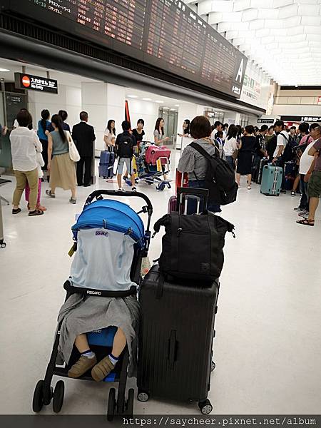 去年夏天媽媽就是這樣一手推車加小孩一手行李箱,還推上Skyliner到東京的飯店呢