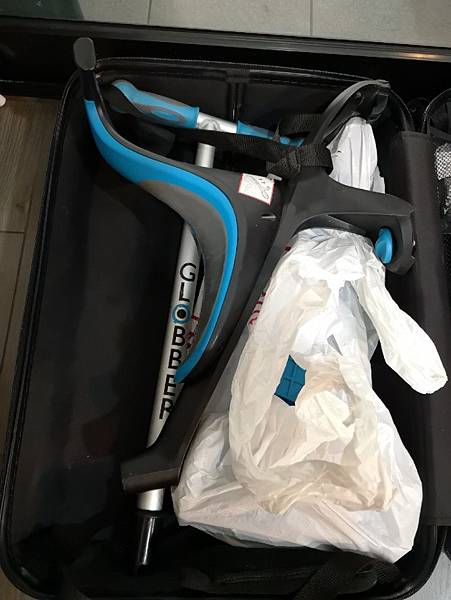 我還幫它安置好行李廂空間,哈哈拆裝好,不論是桿子長度,或是龍頭的寬度,都可以放入一般常用的大型行李箱耶!