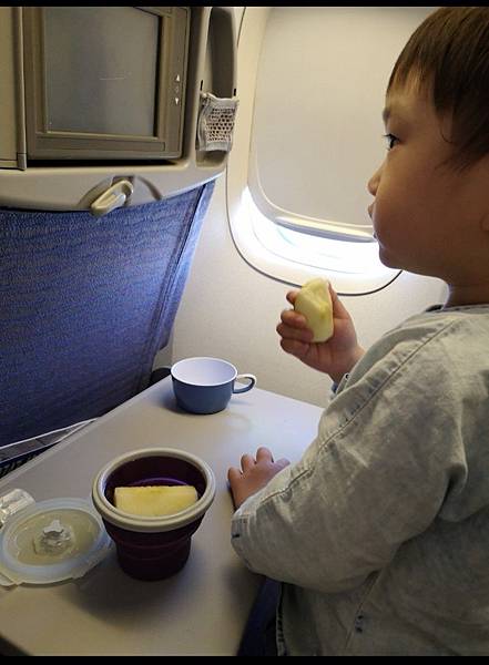 訂機票時記得2歲前可以加訂嬰兒斷奶餐,通常內容是一個大餐盒的蔬菜泥,有的航空公司是給罐頭果泥或是蘋果汁。